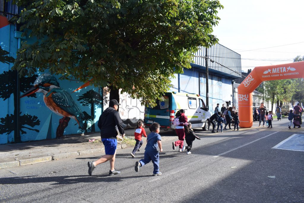 🔹 Se realizaron seis largadas por categorías, comenzando con los más pequeños de los niveles de transición, seguidos por 1° y 2° básico, luego 3° y 4°, 5° y 6°, 7° y 8°, y finalizamos con una emotiva largada donde participaron profesoras, profesores, asistentes de la educación, apoderados y vecinos del sector Tucapel. ¡Una verdadera fiesta del deporte escolar!